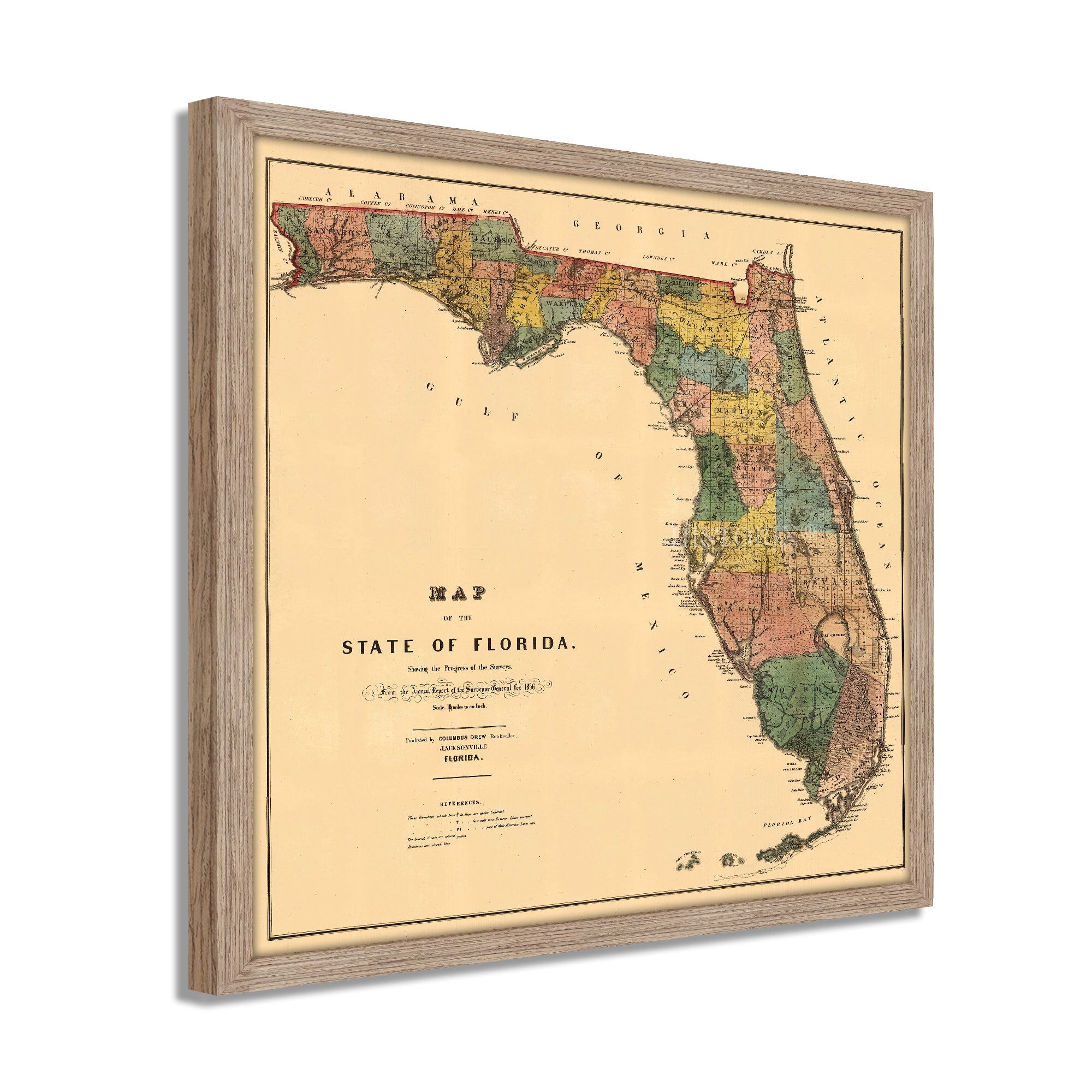 1856 State of Florida Showing Progress of Surveys Map Framed Wall